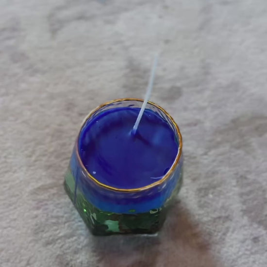 The colours are stunning — shades of green like fresh grass, ocean blue, and deep purple like a magical night sky. And the shape? A cool, geometric crystal that makes it look like pure magic.